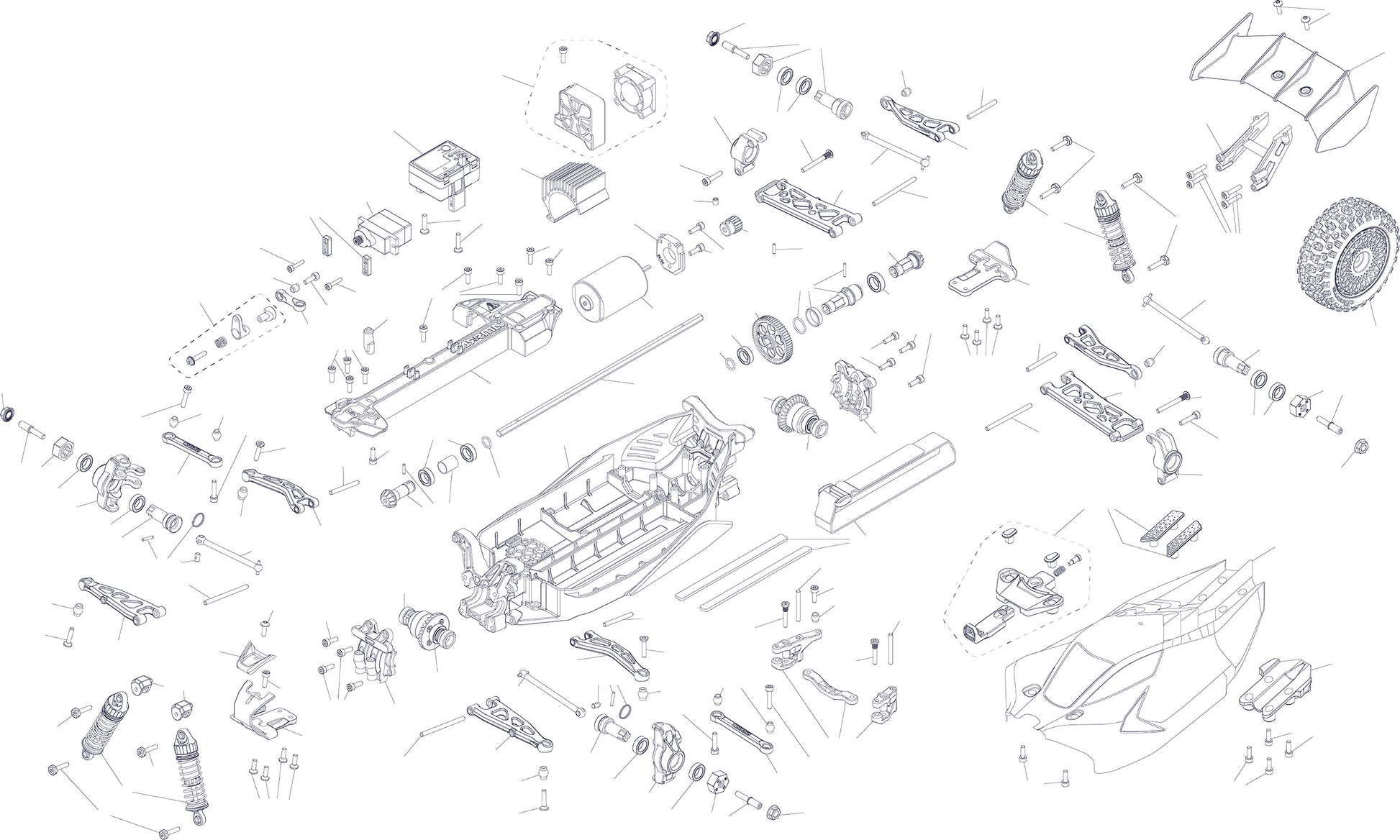 The TYPHON GROM buggy body snaps onto the chassis easily, quickly, and securely, and comes off with a simple press-and-release. With no tiny clips to force into place, it’s a body attachment system that’s perfect even for young bashers.